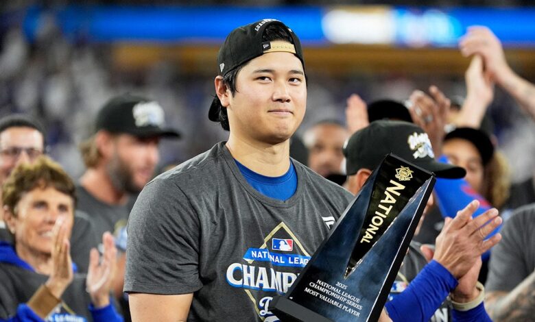 Ohtani’s final feat was one of the most legendary performances in MLB postseason history. He hit three homers while pitching six shutout innings and striking out 10 against the Milwaukee Brewers as the Dodgers completed a four-game sweep of the NL Championship Series.