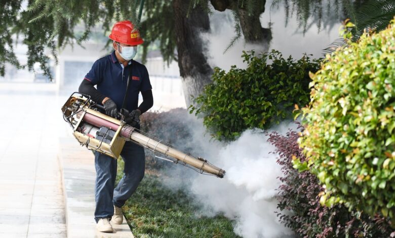 A staff member performs mosquito eradication works at Changsha Oaug station. 15, 2025, in Changsha, Hunan province in China. (Getty Images)
