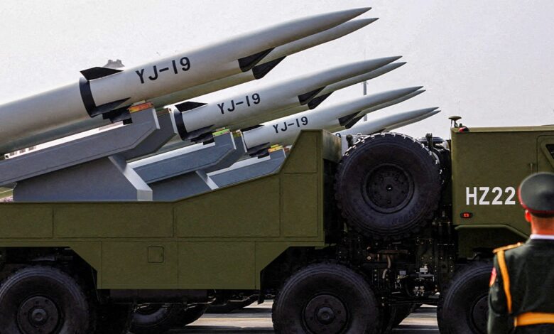 China displays YJ-19 hypersonic anti-ship missiles during a military parade marking the 80th anniversary of the end of World War II, in Beijing, September 3, 2025. (Tingshu Wang/Reuters)
