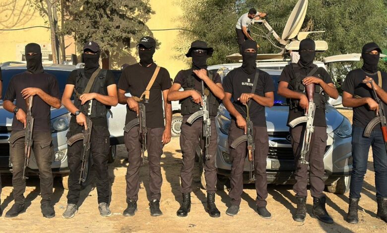 A group of Hamas gunmen in Deir-el Balah, central Gaza, as 20 live Israeli hostages were released on October 13, 2025. (Photos by TPS-IL)