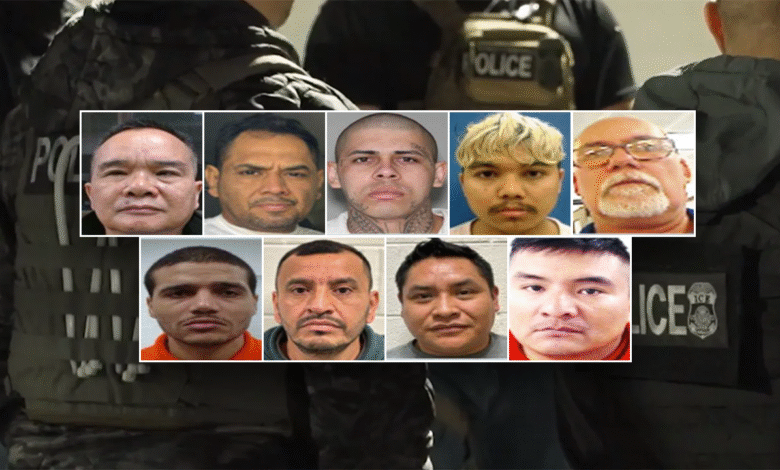 From left to right, top to bottom: Sisawang Khambounheuang, Milton Rene Mendez-Arevalo, Hector Eugenio Ramirez-Martinez, Kunal Chhetri, Lazaro Mateo Ruiz, Juan Gomez-Gutierrez, Juan Brito-Rios, Brigidio Ovido Gomez Garcia, Francisco Nava-Garcia. (Fox News; DHS)