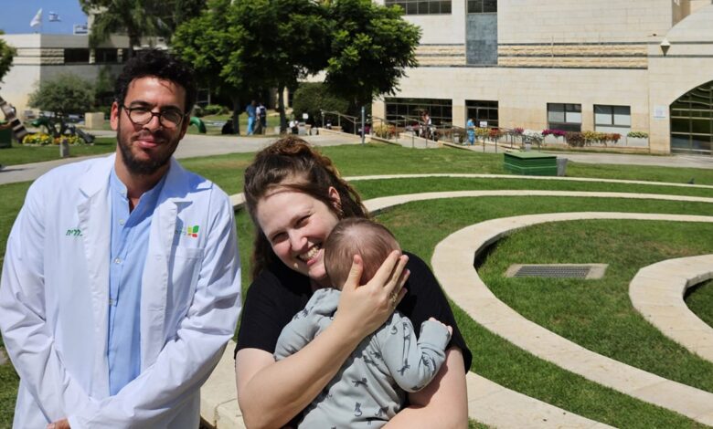 Hadas Levy, his son and Dr. Eran Altman, director of the sperm bank at the male infertility clinic at Beilinson Hospital, Israel. (Rabin Medical Center – Beilinson Hospital.)