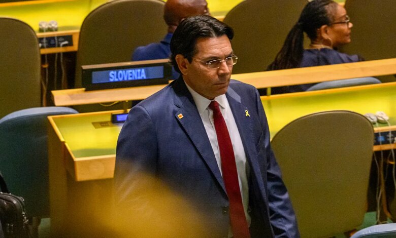 Israeli ambassador to the United Nations Danny Danon before the Israeli Prime Minister Benjamin Netanyahu’s speech during the 80th session of the United Nations General Assembly (UNGA) on September 26, 2025 in New York. (Alexi J. Rosenfeld / Getty Images)