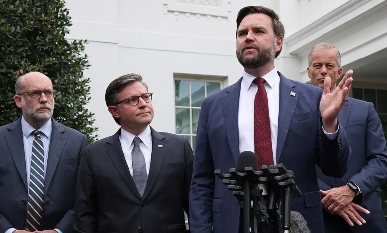 Vance appeared alongside President Mike Johnson, R-La., The head of the majority of the Senate John Thune, RS.D., and the Director of the Management and Budget Office (OMB), Russ Vought, in a demonstration of the republican unit after the meeting, but clearly indicated that the two parties are still far.