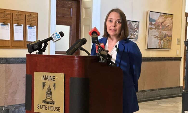 Maine Secretary of State Shenna Bellows speaks during a press conference on Monday, October 6, 2025 at Maine State House in Augusta. (AP photo / Patrick Whittle)