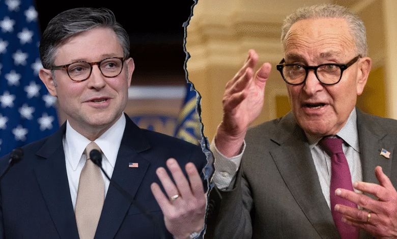 Speaker Mike Johnson is canceling votes in the House for the third straight week in an effort to pressure Senate Minority Leader Chuck Schumer during the government shutdown. (J. Scott Applewhite/AP Photo; Allison Robbert/AP Photo)
