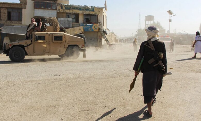 Afghan Taliban fighters patrol near the Afghan-Pakistani border in Spin Boldak, Kandahar province, following exchanges of fire between Pakistani and Afghan forces in Afghanistan, October 15, 2025. (Reuters/Stringer)