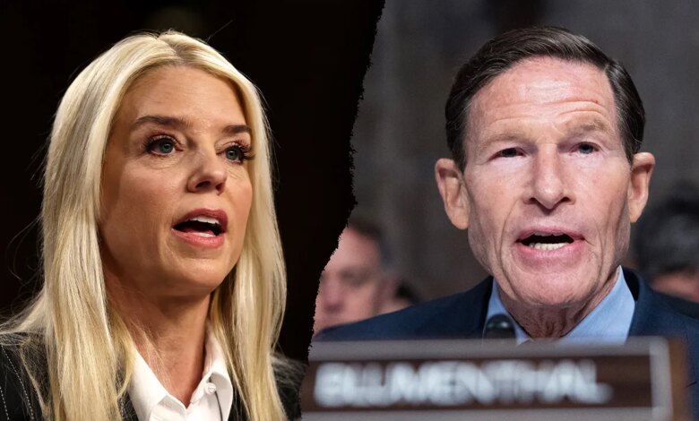 Pam Bondi clashes with Senator Blumenthal over military service demands