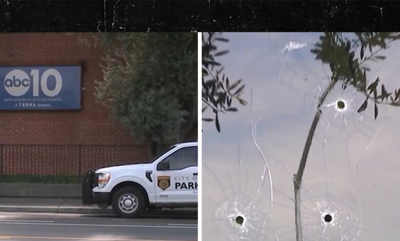 Police officers say that the bullets are torn through the local ABC news station in Sacramento
