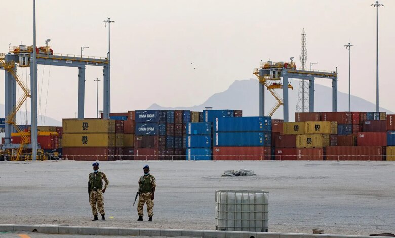 Somaliland safety staff are looking in front of the shipping containers under storage at the Berbera port. (Ed Ram / AFP via Getty Images)