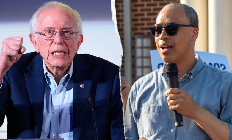 Sen. Bernie Sanders, I-Vt., (left) declined to answer whether Virginia AG candidate Jay Jones (right) should drop out because of the violent messages he sent. (Joe Maher; Maxine Wallace/The Washington Post/Getty Images)