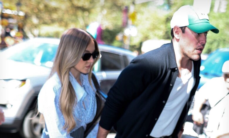The movie star and television were seen walking in the New York City office building on Sunday afternoon … her long legs appear in a gray skirt with a gray summit that matches a long -sleeved shirt.