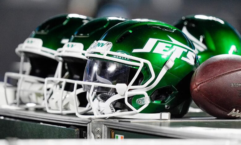 New York Jets helmets during the second half against the Carolina Panthers at the Bank of America Stadium in Charlotte, NC, August 17, 2024. (Jim Dedmon / USA TODAY SPORTS)