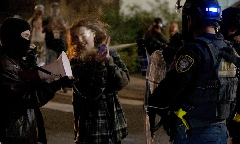 A spokesperson for the Portland police office told Fox News Digital that among those arrested on Thursday “was a person known to have a significant presence on social networks, as well as others representing a range of political points of view”.