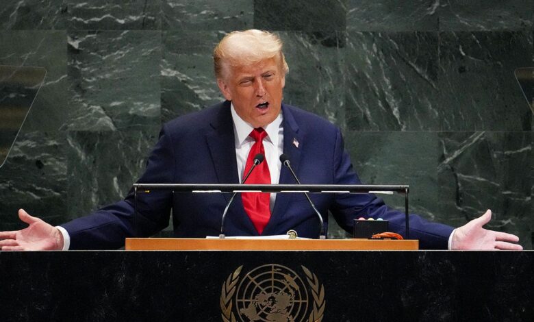 President Donald Trump pronounces remarks at the United Nations General Assembly at the United Nations headquarters in New York on September 23, 2025. (Timothy A. Clary / AFP via Getty Images)