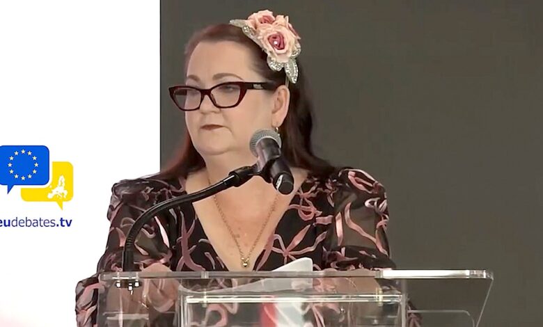 Emma Mason speaks during an event on Wednesday on the touch of the United Nations General Assembly in New York after her 15 -year -old daughter, who was the victim of intimidation on social networks, committed suicide. (EUDEBATES.TV)