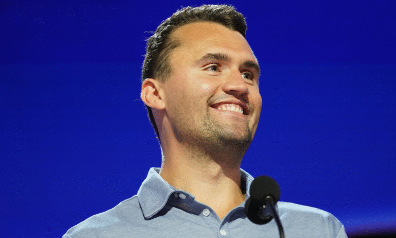 The founder of Turning Point USA, Charlie Kirk on stage, at the Fiserv forum during preparations for the National Republican Convention on July 14, 2024, in Milwaukee. (Images Andrew Harnik / Getty)