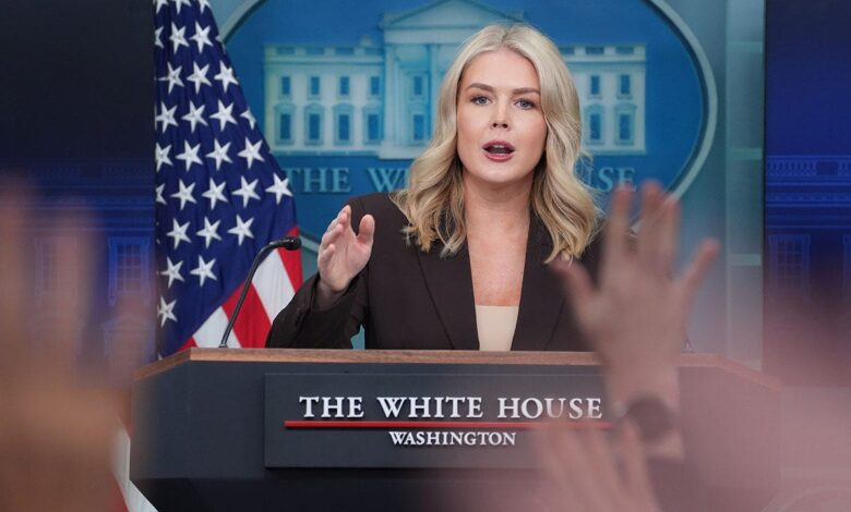 The White House press secretary, Karoline Leavitt, speaks during a White House press briefing in Washington, DC (Saul Loeb / AFP via Getty Images)