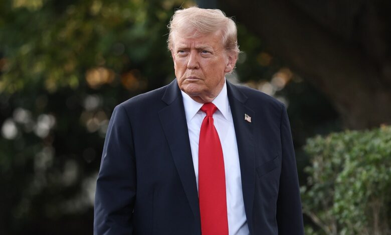 President Donald Trump heads for journalists while leaving the White House on September 11, 2025 in Washington, DC (Win McNamee / Getty images)