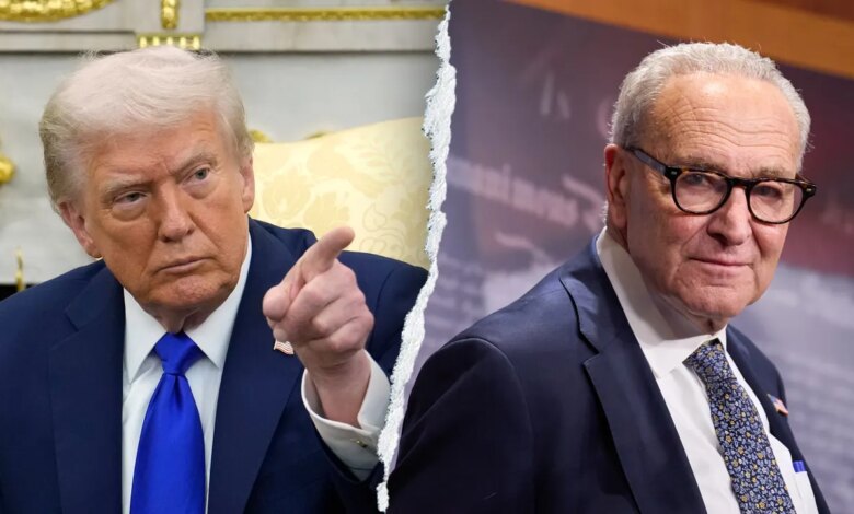 President Donald Trump said Tuesday, October 7, 2025: “I just don’t know if (Sen. Chuck) Schumer has any power left. » (Adrian Wyld/The Canadian Press/AP; Jacquelyn Martin/AP)