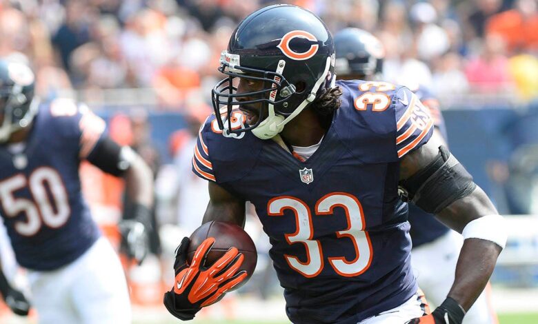 The corner half of Chicago Bears Charles Tillman (33) interception against the Bengals of Cincinnati during the first quarter on the Soldier Field on September 8, 2013. (Mike Dinovo / USA TODAY SPORTS)