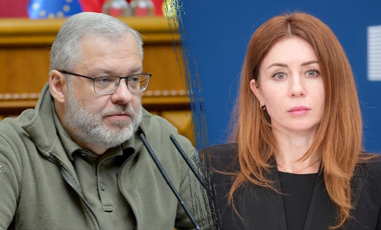 Justice Minister Herman Halushchenko and Energy Minister Svitlana Grynchuk submitted their resignations on November 12, 2025. (Thierry Monasse/Getty Images; Andrii Nesterenko/Global Images Ukraine via Getty Images)