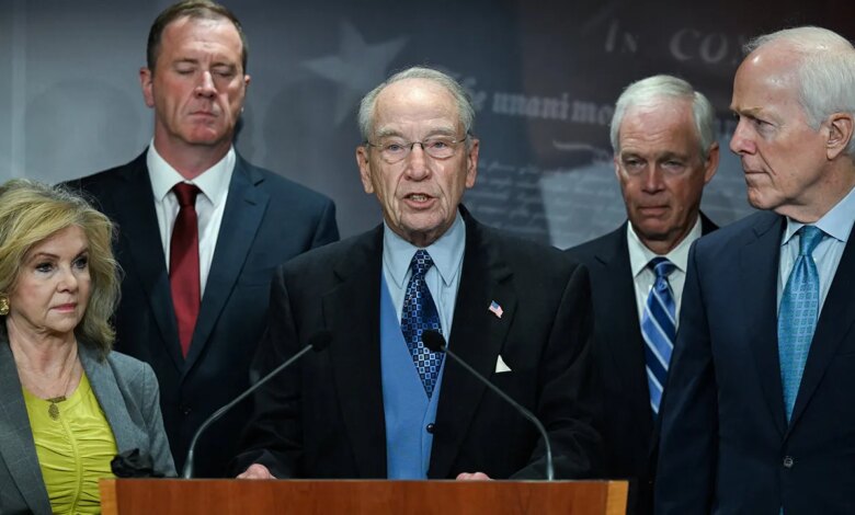 Senator Chuck Grassley speaks during a news conference on the Arctic Frost investigation with other members of the Senate Judiciary Committee weeks after the continued U.S. government shutdown in Washington, DC, October 29, 2025. (Reuters/Annabelle Gordon)