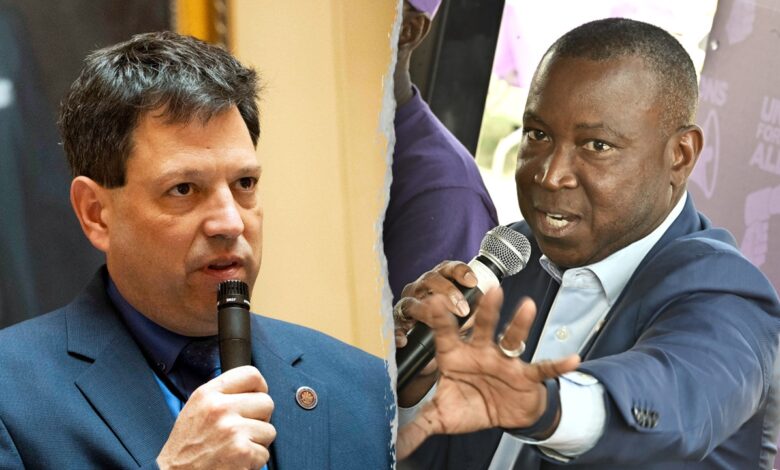 Senate Majority Leader Scott Surovell of Mount Vernon, left; House Speaker Don Scott Jr. of Portsmouth, right (Minh Connors for The Washington Post via Getty Images; Shannon Finney/Getty Images for SEIU)