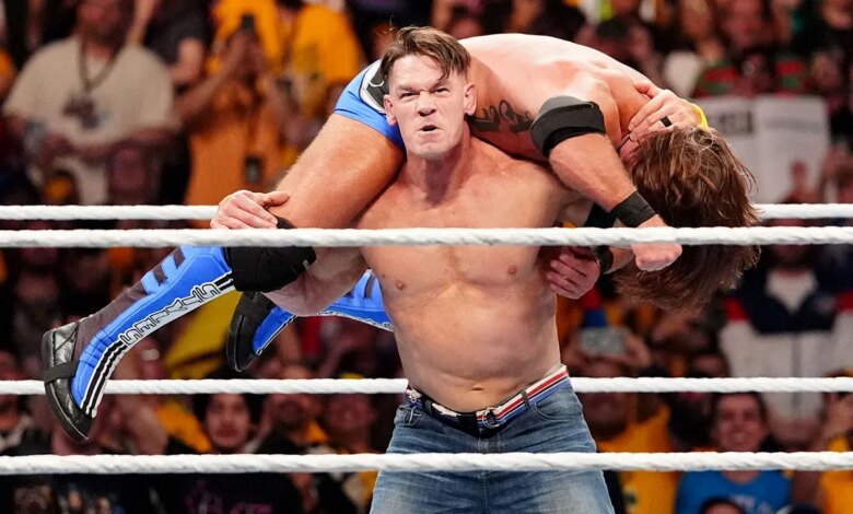 John Cena hits AJ Styles with an Attitude Adjustment during Crown Jewel at RAC Arena on October 11, 2025, in Perth, Australia. (Georgiana Dallas/WWE via Getty Images)
